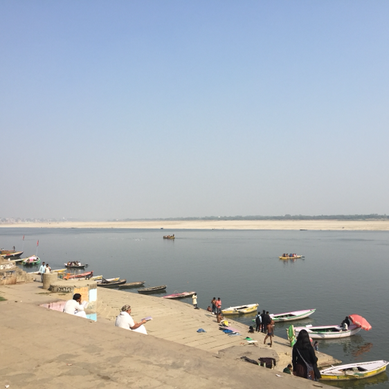 첫날, 고돌리아 한 복판에 내렸을 때 받은 인상은 그렇게 강렬할 수가 없다. 메인 가트까지 걸어가는 그 짧은 시간 새에 인도의 집합체가 한꺼번에 모든 감각으로 밀려들어왔다. 마치 2배속 정도로 높인 영상을 보듯 눈 앞에 릭샤꾼이 어느 순간 소의 뒤태로, 또 어느 순간 구걸하는 사람들로, 기념품을 파는 아저씨로 계속해서 바뀌었다. 심지어 메인 가트에 도착하니 난이도가 더 높은 광경이 우리를 맞이했다. 저녁시간에 도착했더니 뿌자라는 종교의식과 딱 맞아버린 것이다. 엄청난 인파와 그들이 만들어내는 엄청난 소음을 간신히 뚫고서야 여차 저차 해서 숙소를 찾아갈 수 있었다. 방을 배정받자마자 짐과 함께 널브러지며 한꺼번에 들이닥친 자극에 한동안 멍하니 있어야 했다. 끈끈한 점액질로 된 엄청난 공간을 통과해버린 것 같은 기분이었다. 그 잔해물들이 온몸에 끈적하게 눌어붙어있었다.