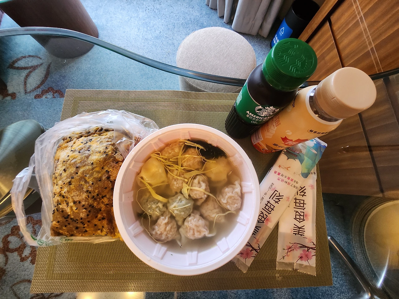 그렇게 작은 가게에서 막 만들어낸 쩐빙과 뜨끈한 만둣국을 사 들고 호텔로 돌아왔다. 전부 중국어로 주문하고 사 왔다는 사실만으로도 음식이 더 특별하게 느껴졌다.