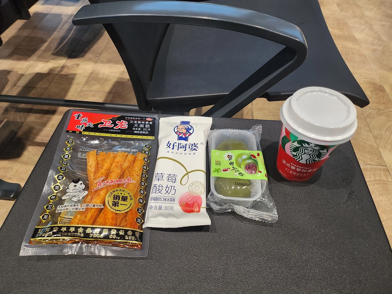 그렇지만 중국은 실패 확률도 함께 존재하는 나라여서 익숙하지 않은 음료나 과자를 고를 때면 한참을 고민하게 되었다. 결국에 이때 아무것도 사지 않아서 공항 편의점에서 간식 몇 개를 구입했는데 그중 쫀드기의 향이 너무 강렬해서 고생했던 기억이 난다.