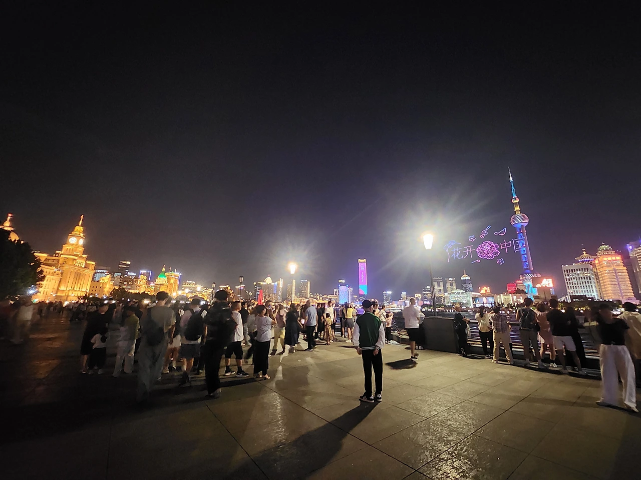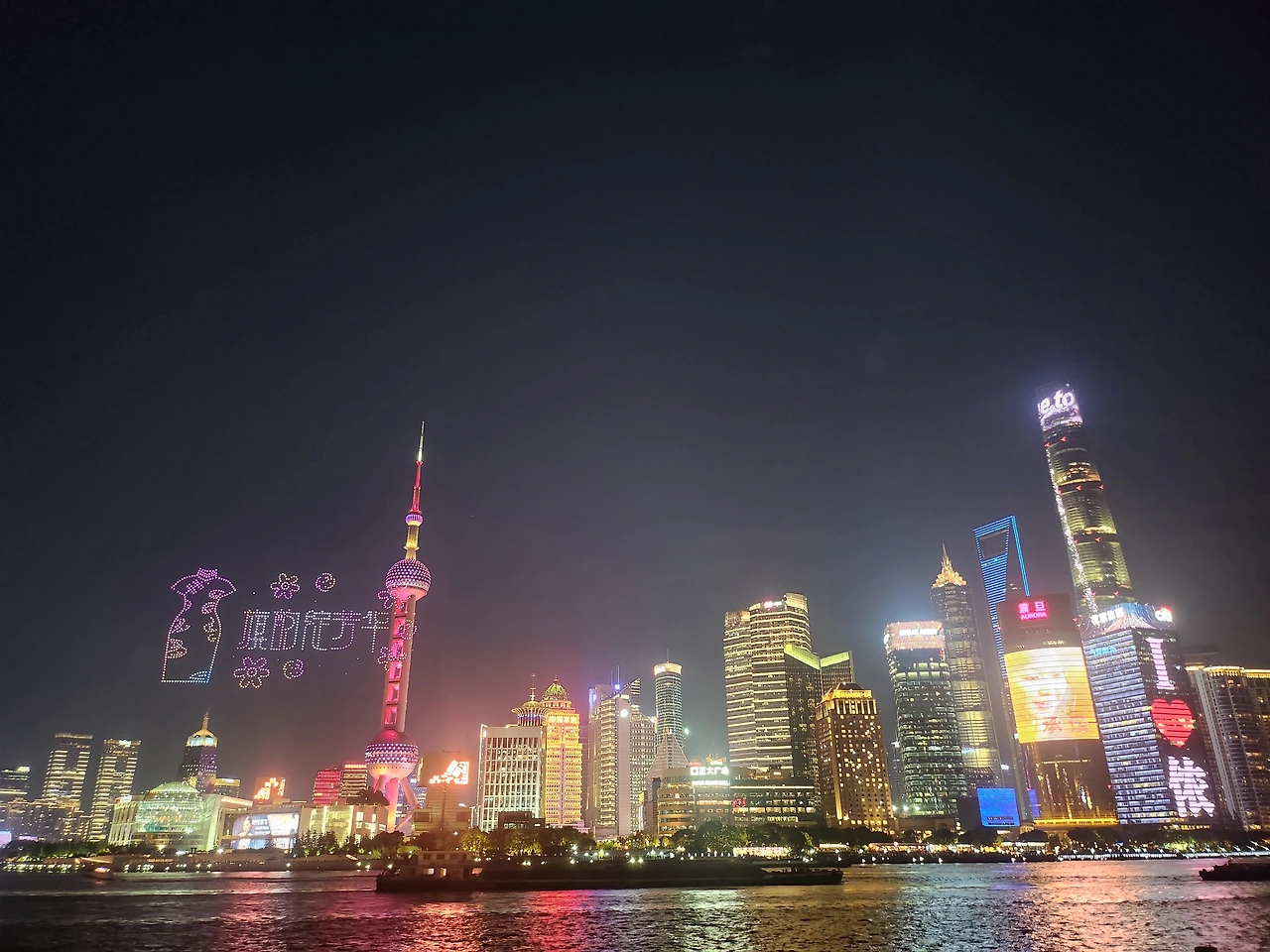 레스토랑을 나선 후, 동방명주 아래에서 펼쳐지는 드론쇼를 보기 위해 황푸강 쪽으로 걸어갔다. 수많은 사람들이 스마트폰을 꺼내 들고 하늘을 바라보는 사이, 수많은 드론이 하늘 위를 수놓기 시작했다.