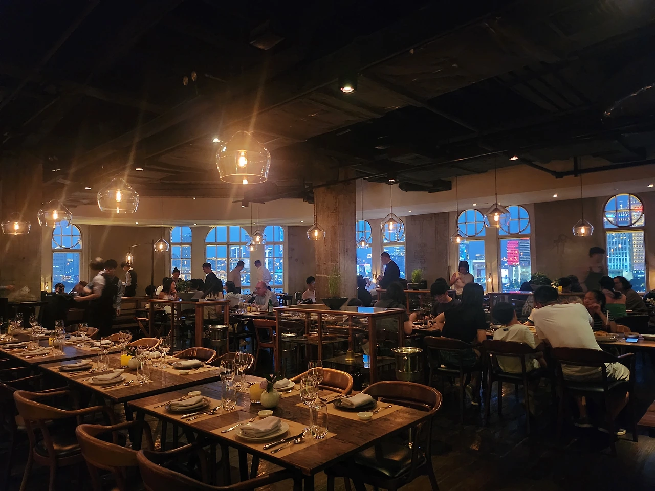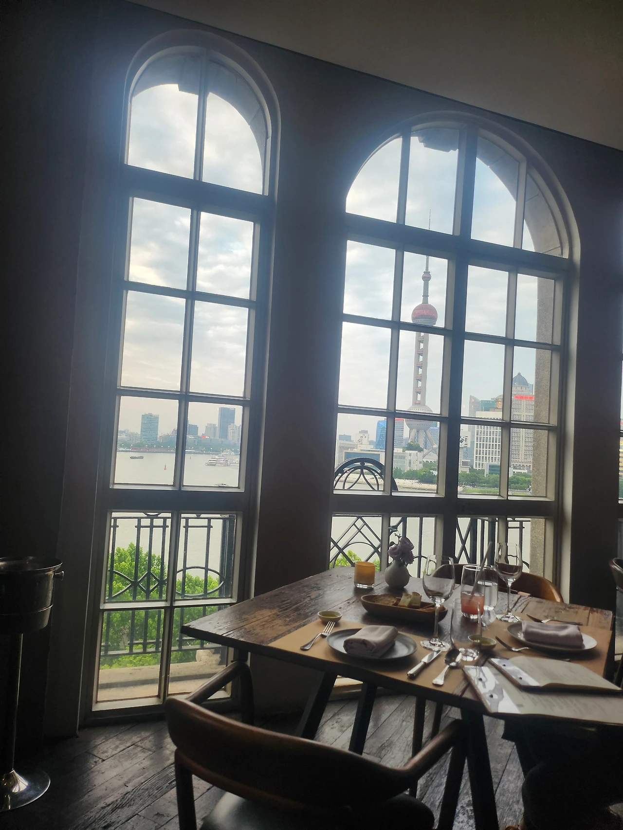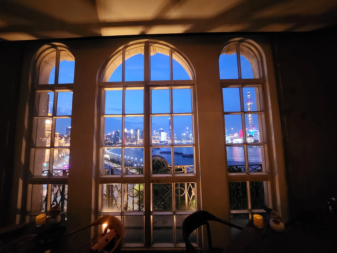 저녁 6시가 조금 지난 시각에 레스토랑 입구에 도착했다. 엘리베이터를 타고 레스토랑이 위치한 층에 올랐다. 드넓은 통유리창 너머로 빛나는 와이탄과 황푸강, 그리고 그 너머로 동방명주의 모습이 펼쳐졌다.