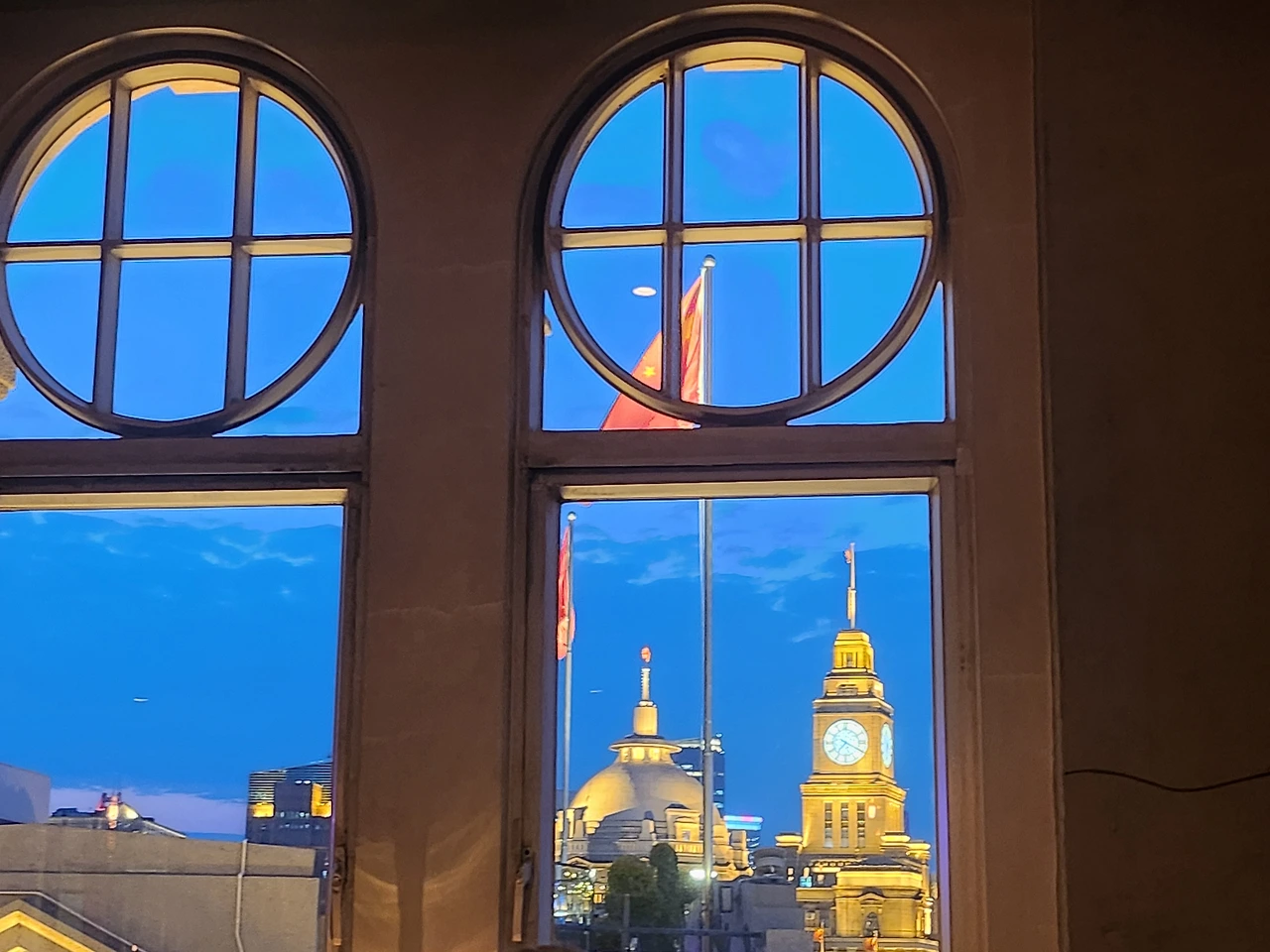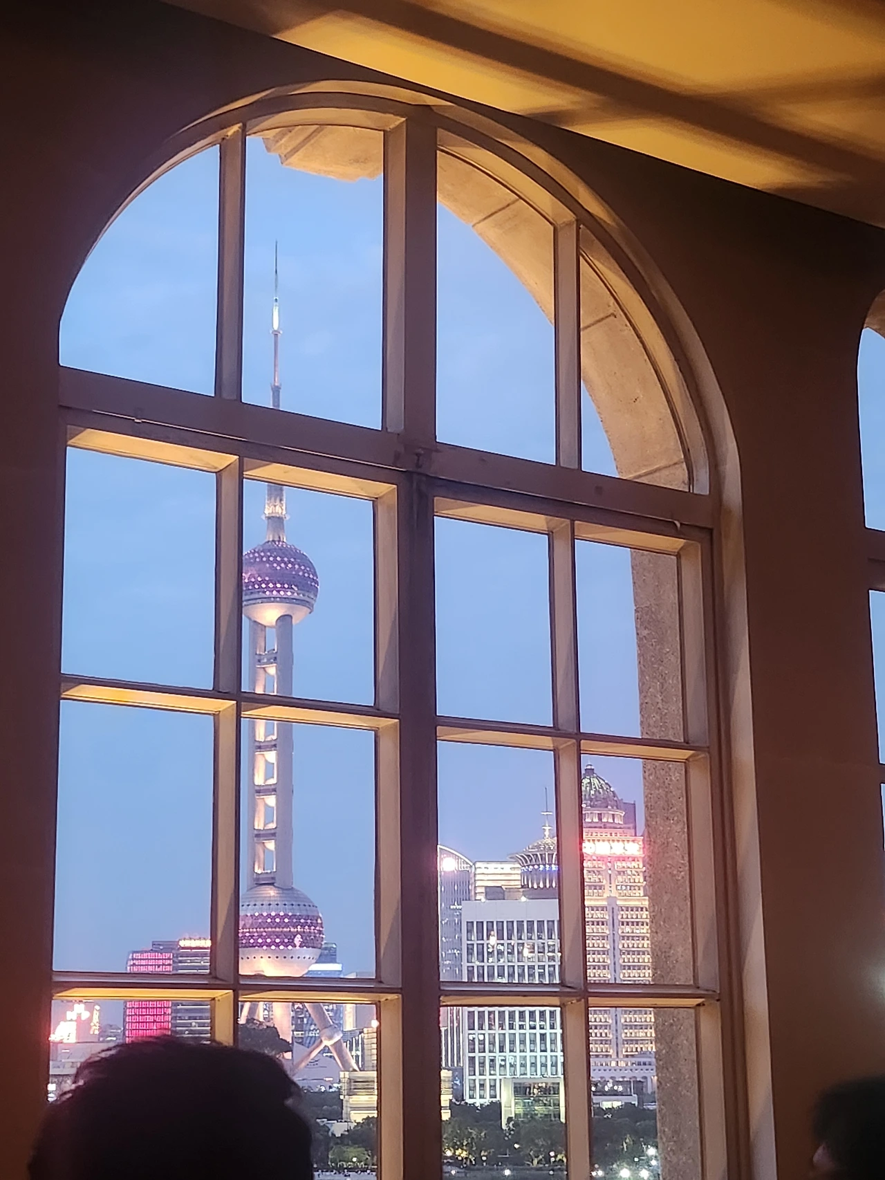 그래서 한국에서 미리 레스토랑을 조사하여 예약을 해두었고, “我想要靠窗的位子。” (창가 자리를 원해요.)라는 문장까지 준비해 두었다. 고급스러운 분위기 속에서 창가로 안내받았지만, 막상 자리에 앉아보니 와이탄(外滩) 쪽 전망만 보이고 동방명주(东方明珠)가 시야에 들어오지 않았다. 순간 망설였지만, 용기를 내서 말했다.