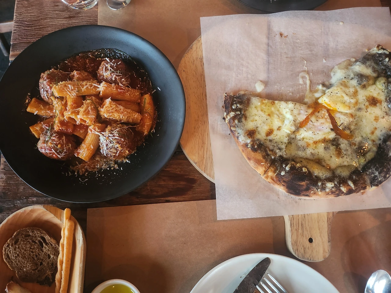 라는 간단한 말만 했다. 하지만 직원은 친절하게도 조금 더 안쪽이지만 탁 트인 전망의 자리로 나를 안내해 주었다. 전망을 즐기며 주문한 음료수와 피자와 미트볼 등을 먹으며 해가 지는 시간까지 기다렸다.