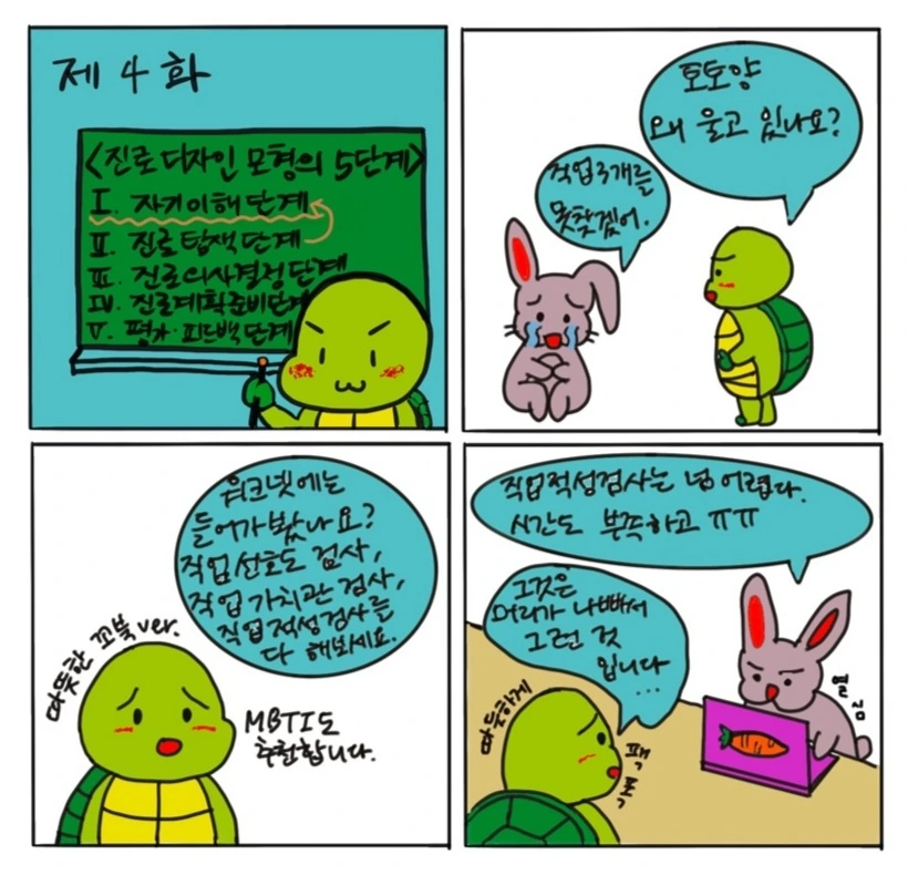검사 결과와 평소 내가 생각해왔던 직업, 가까운 지인들이 내게 추천해주는 직업, mbti와 같은 성격검사에서 나온 직업, 가족 친지들이 종사하고 있는 직업들을 비교하여 자신이 중요하게 여기는 가치(흥미, 적성, 가치관, 발전 가능성, 자기 계발, 보수 등)의 가중치를 설정하고 성취 가능성을 곱한 값을 비교하여 가장 높은 점수가 나온 직업 세 가지를 선택합니다.