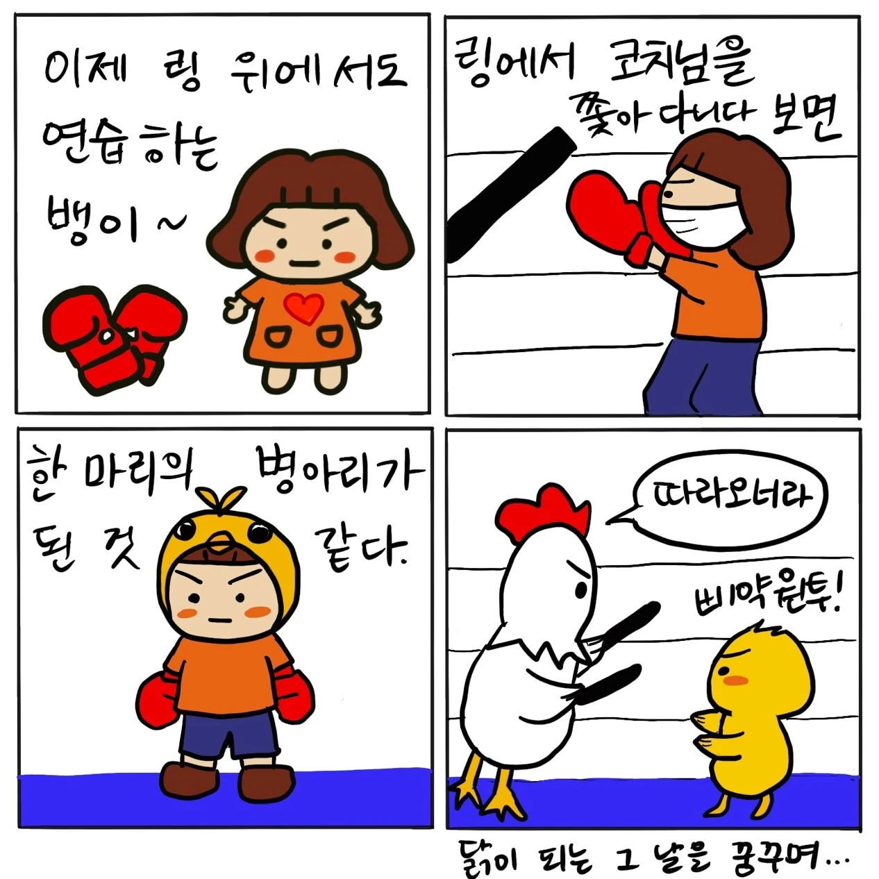다른 누군가와 비교한다면 한 없이 초라해지는 복싱이지만 어제의 나와 비교하기 때문에 늘 더 나은 모습, 발전적인 모습을 보며 건강해질 미래의 자신을 기대하게 된다.