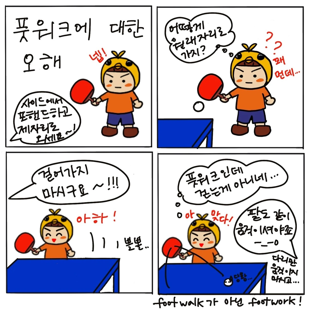 첫째, 일정 수준 이상의 운동량을 채우고 싶었다. 탁구를 배우는 처음 한 달간은 제자리에서 스윙연습을 많이 하기 때문에 정신적으로 고단하기는 해도 운동량은 그렇게 많지 않았다. 하지만 풋워크에 들어가면 움직임이 많아지기 때문에 레슨만 받아도 운동한 느낌이 나서 좋았다.
