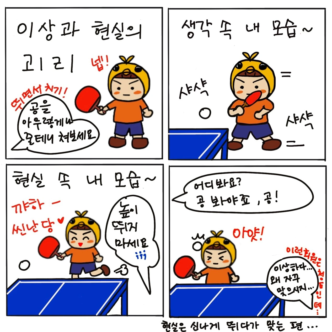 내가 탁구를 하면서 나아가야 할 지향점은 타인과의 비교가 아니다. 맑은 날이 있으면 흐린 날도 있듯이 일희일비하지 않고 나아가는 마음이다. 다양한 사람들을 만나면서 있는 그대로의 그들을 존중하고 나와 다름을 인정하는 태도이다. 그것만으로도 나는 얻는 게 참 많은 감사한 사람이다.