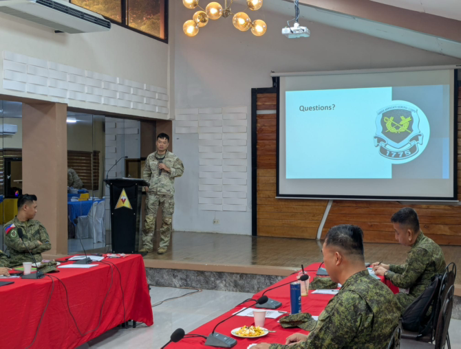 발표가 모두 끝난 뒤, 기념촬영과 함께 선물을 교환하는 시간이 있었다. 우리는 따로 준비한 선물이 없었기에, 내 군복에 달린 패치를 떼어 몇몇 분들에게 드렸다. 계급 높은 분들이 나에게 관심을 보여주셨는데, 아시아인인데도 미군 군복을 입고 있는 모습이 신기했던 듯하다.