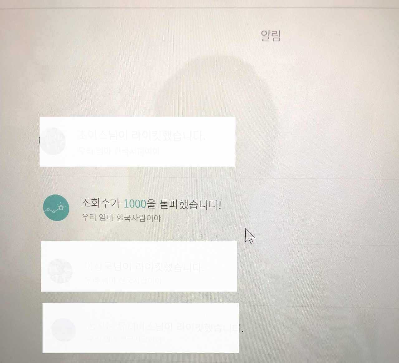 내가 쓴 특정 글에 대한 조회수가 1000을 넘었다고 하는 알림이, 아직 뿌옇게 서린 잠을 채 쫓아내지 못한 내 두 눈에 들어왔다.