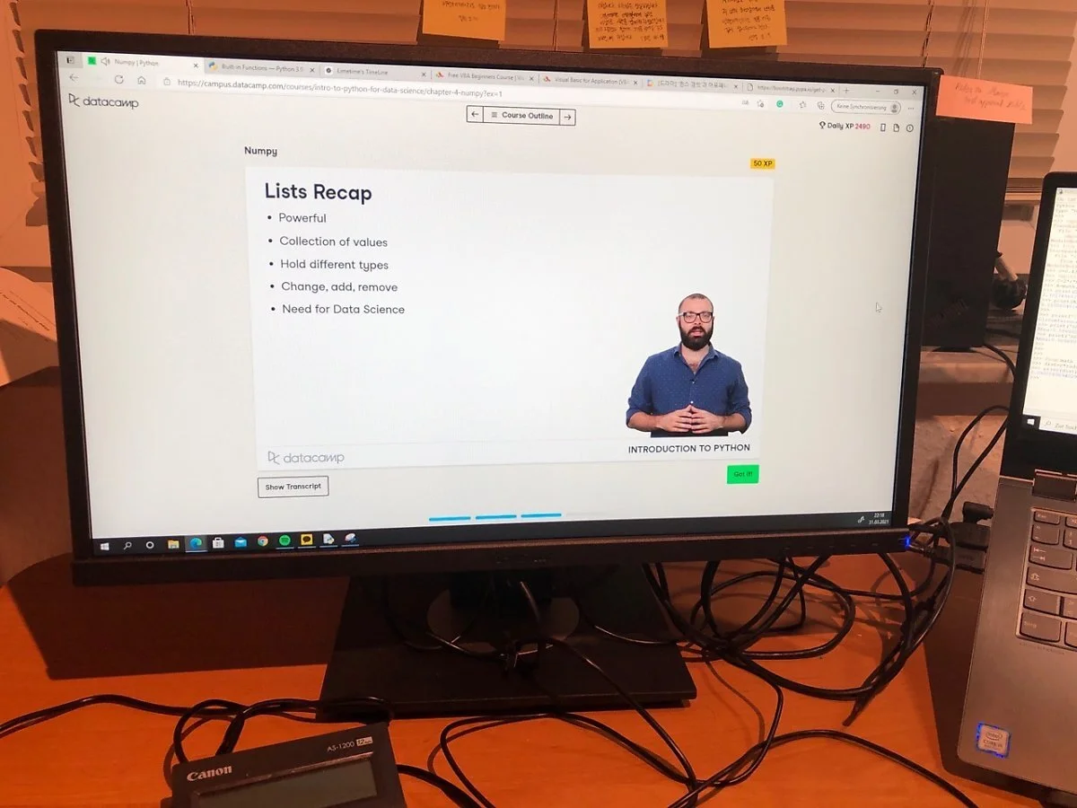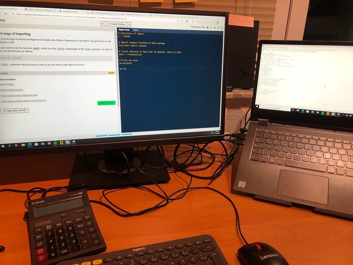 내가 홈오피스 할 때 사용하는 서재처럼 꾸민 집의 한 켠에서 큰 모니터까지 연결시켜서 따라해보는데 생각했던 것 보다는 초급이라 그런지 그렇게 겁먹을만한 것은 아닌 것 같다.