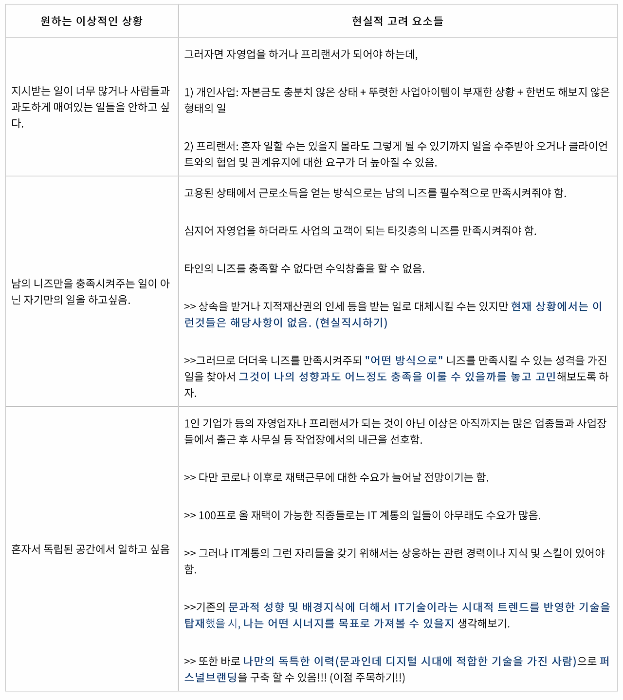 내가 원하는 이상적인 상황이 현실이라는 맥락 속에서 어떻게 실현 될 수 있을지를 파악해 보자.