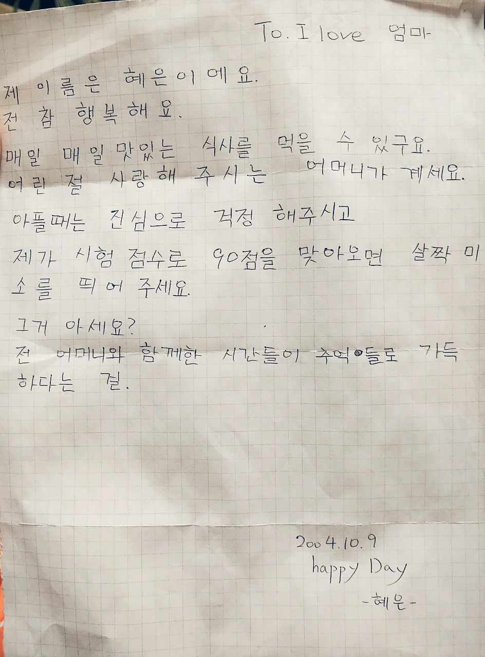 짐을 풀고 편한 옷으로 갈아입고서 집 냉장고에 붙여진 사진들과 편지를 떼서 보았다. 기억에는 남아있지 않은 Happy Day.