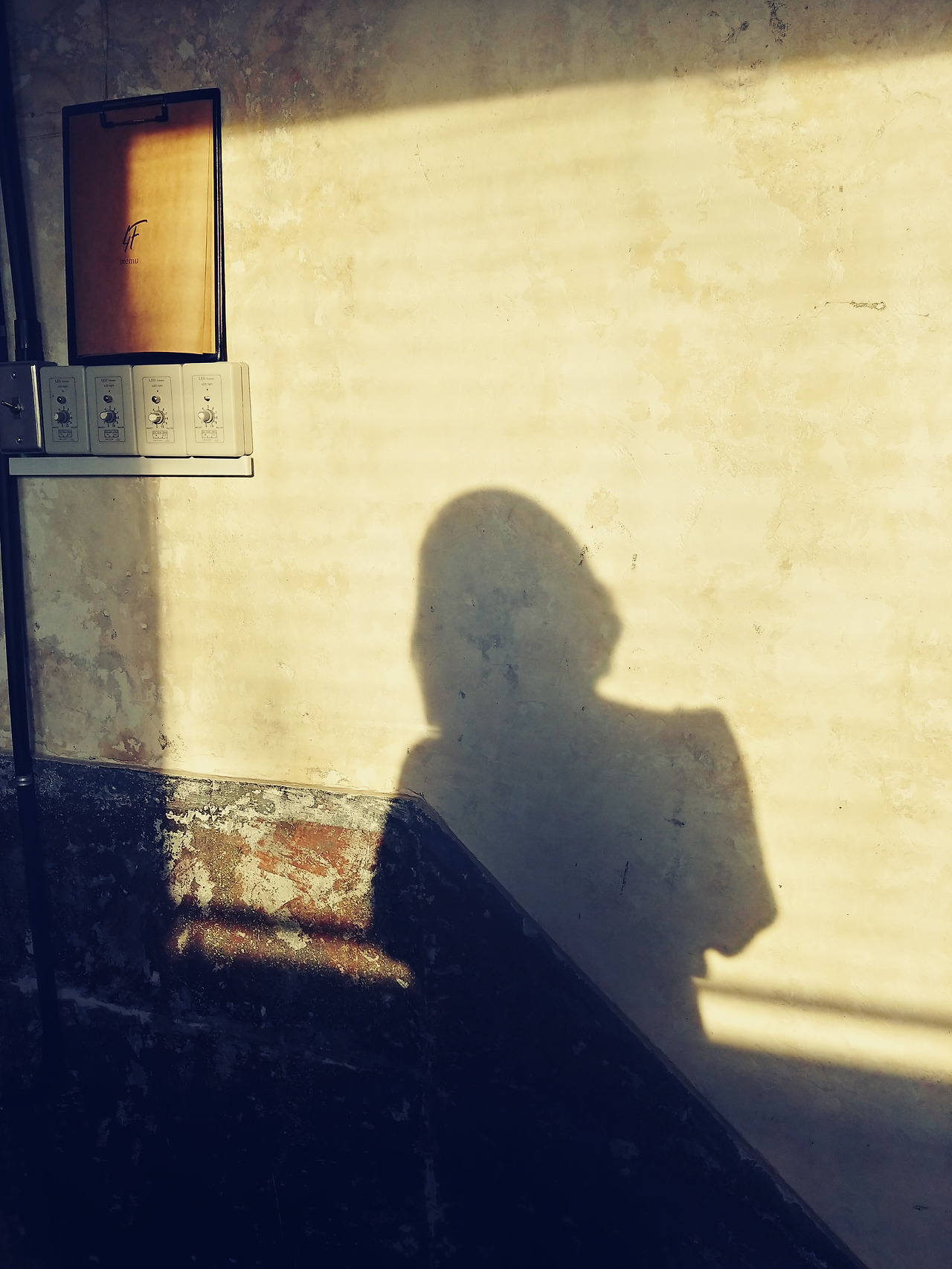 음료가 나오길 기다리는 동안 그림자하고 노는 거야.