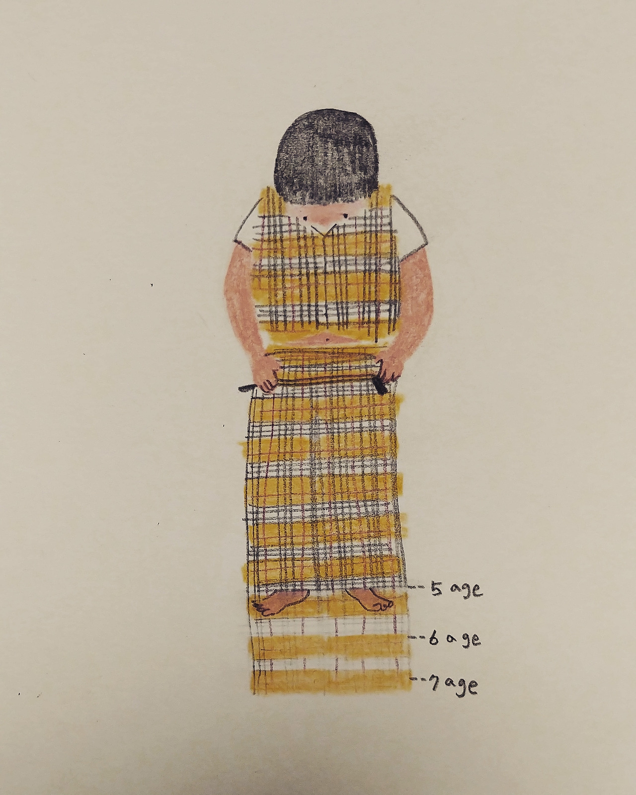 위를 두 번 세 번 접어 입어도 남는 기장 때문에.