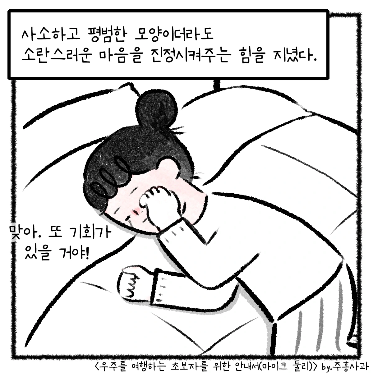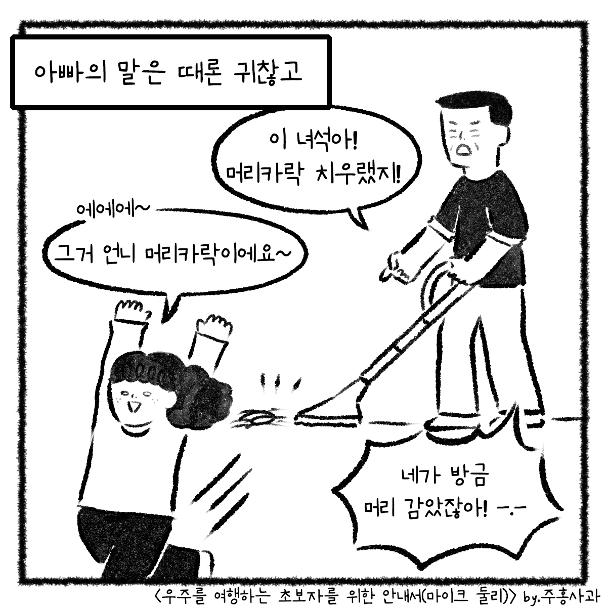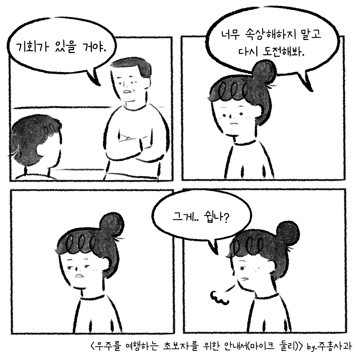 책을 읽으며 떠올랐던 아버지와의 에피소드를 웹툰을 그려봤어요. 책의 저자 마이크 둘리는 오십이 넘어 아버지가 되었고 소중한 딸을 얻었어요. 딸이 태어난 날, '내 인생의 시작점이 되었다'라고 서문에서 언급할 만큼 그의 삶은 완전히 바뀌었고 그는 사랑하는 딸을 위해 편지를 씁니다. 자신이 얼마나 사랑받는 존재인지 알려주기 위해, 딸이 어둠 속에 있을 때 빛이 되어주고 희망이 되어주기 위해.