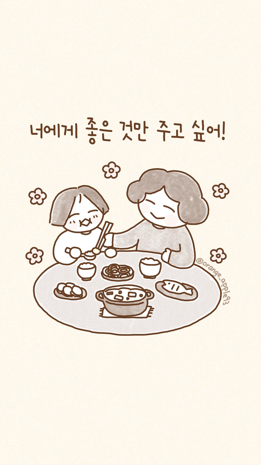 엄마와 딸 일러스트 아이폰 배경화면 :