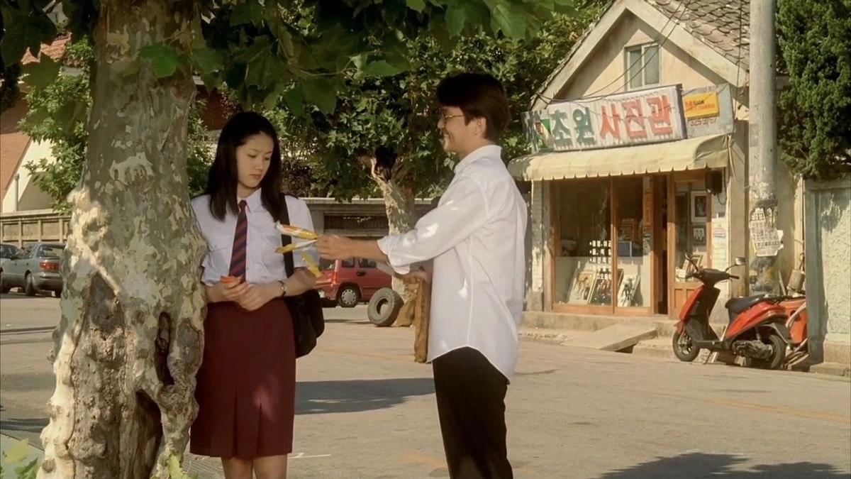 영화는 한 남자의 급작스러운 불치병에 마주한 순간 만나게 된 풋풋한 사랑의 이야기이다. 이 작품에 내가 매료되었던 것은 슬픔을 억지로 지어 짜는 신파의 요소가 없다는 것이다. 마치 그냥 평범하게 내뱉는 서정적인 대사에 매료되었고 김광석 노래 같이 느껴졌다. 공교롭게 글을 적으면서 찾다 보니 나의 이런 생각이 일정 부분 맞아떨어졌다. 허진호 감독은 김광석 영정 사진에 환하게 웃고 있는 모습에서 착안하여 정원이라는 캐릭터를 만들었다고 한다.