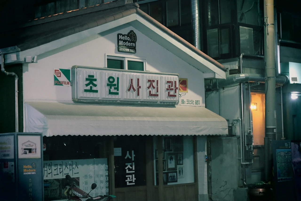 다시 채워진 게이지가 가득 찼을 때는 땅거미가 지고 있었다. 결국 저녁 식사가 일정에서 우선순위가 되었다. 미리 알아본 나의 행선지는 숙소와 거리가 멀지 않았다. 가방 속 카메라와 삼각대를 제외한 나머지를 비우고 메고 발길을 나섰다. 뚜벅뚜벅 걸어가다 보니 나의 희망 리스트인 초원사진관이 눈에 들어왔다. 미처 문이 닫힌 입구 앞에서 멍하니 서서 간직하고 있던 영화의 여운을 느껴보았다.