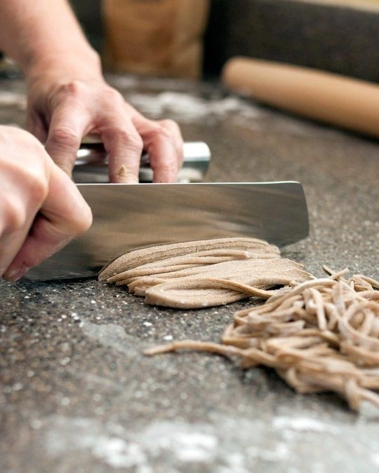 면이 익혀지는 적당한 타이밍을 파악해서 탄력을 잃지 않기 위해 차가운 물에 식힌다. 이러한 작업을 통해 메밀의 향이 보존되게 된다. 그렇게 만들어진 이 면은 점점 온도가 올라가면서 입안으로 들어갈 때쯤이면 메밀 향이 은은하게 퍼져가진다. 먹을 때는 잘 모르겠고 희미한데 뒤돌아 보면 갑자기 문득 생각이 나게 된다. 그게 이 메밀면의 맛이다라고 할 수 있다.