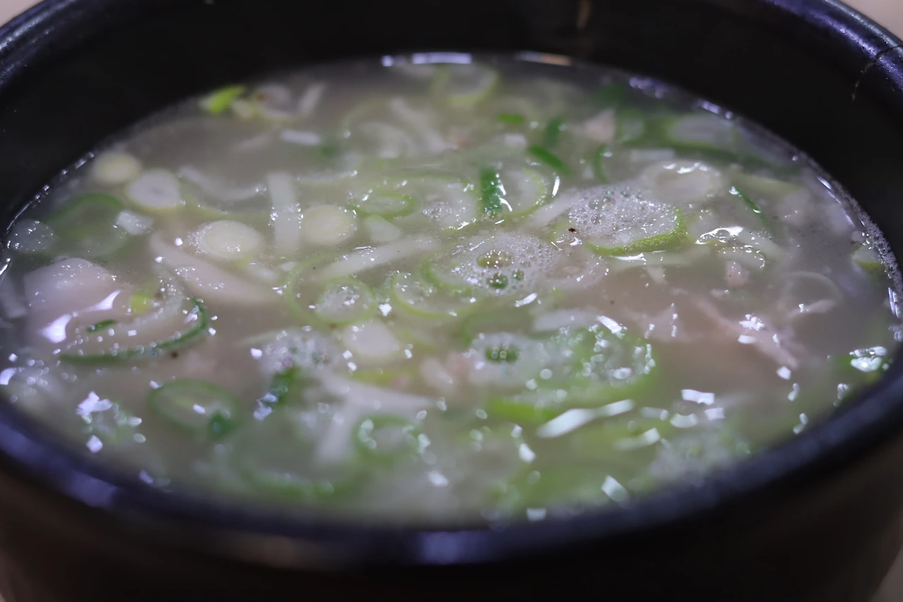 국물에 들어간 고기는 살코기가 많았다. 비계가 거의 없고 파의 양이 상당하였다. 그래서 반주와는 궁합이 적절하였다. 김치도 곁들여 먹어보았는데 꽤나 반찬으로서 기대치 이상의 맛이었다. 남은 밥공기를 국물에 넣어주었다. 사실 객관적으로 다이내믹한 맛이 아니다. 어릴 적 보았던 요리왕 비룡에서 입에 음식이 들어가자마자 味 味 라는 단어가 나오는 그런 정도는 아니다.