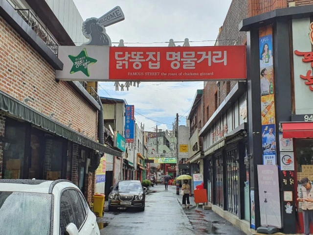 그러기에 꽤나 닭요리에 대한 자부심이 큰 도시이다. 그래서 2013년 이후부터 해마다 치킨페스티벌을 큰 규모로 운영하고 있고 코로나이전에는 100만 명의 인파가 방문하였다고 한다. 이러한 치킨에 대한 프라이드는 알고 있는데 오늘 이야기할 닭똥집 골목이라는 것은 생소하게 느껴진다. 하루에 평균 10만 인파가 오며 가며 한다는 동대구역에서 가까운 곳에 평화시장이라는 곳이 있다. 바로 이곳에서 닭똥집을 메인으로 내세우는 가게들이 스무여 개를 넘는 숫자가 위치해 있는 닭똥집 거리가 형성되어 있다.