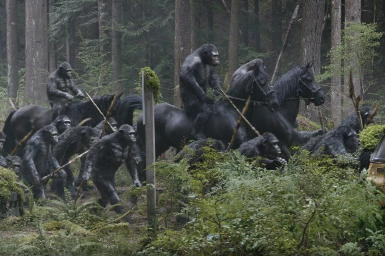 거기다 같은 유인원세력들까지 필요에 의해 정복하고 죽음으로 이끌어버린다. 시저가 외쳤던 유인원은 유인원을 죽이지 않는다는 규칙을 어긴 것이다. 더 나아가서는 인간이 남긴 무기고를 열어 진보라는 이름으로 포장하고자 한다. 그것들을 통해 더 강해져서 지배하고자 하고 포식자가 되고자 한다. 이런 모습을 을 보면 인류가 자연을 정복하고자 했던 모습을 답습한다라는 생각이 든다.