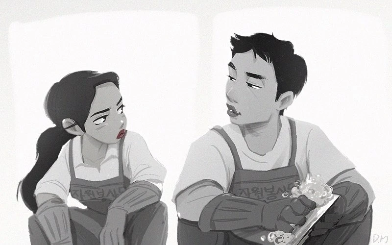 굉장히 하기 싫은 표정인데, 손놀림은 굉장히 익숙해