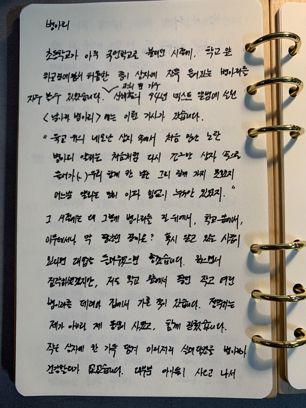 그 시절에는 왜 그렇게 병아리를 길 위에서, 학교 앞에서, 아무 데서나 막 팔았던 걸까요? 혹시 알고 있는 사람이 있다면 대답을 들려주었으면 좋겠습니다. 읽으면서 짐작하셨겠지만, 저도 학교 앞에서 팔던 작고 여린 병아리를 데려와 집에서 기른 적이 있습니다. 정확히는 제가 아니라 제 동생이 사 왔고, 함께 길렀습니다. 작은 상자에 한가득 담겨 이리저리 실려 다녔을 병아리가 건강할 리가 없습니다. 대부분은 아이들이 사 오고 나서 며칠 지나지 않아 죽고 말죠.