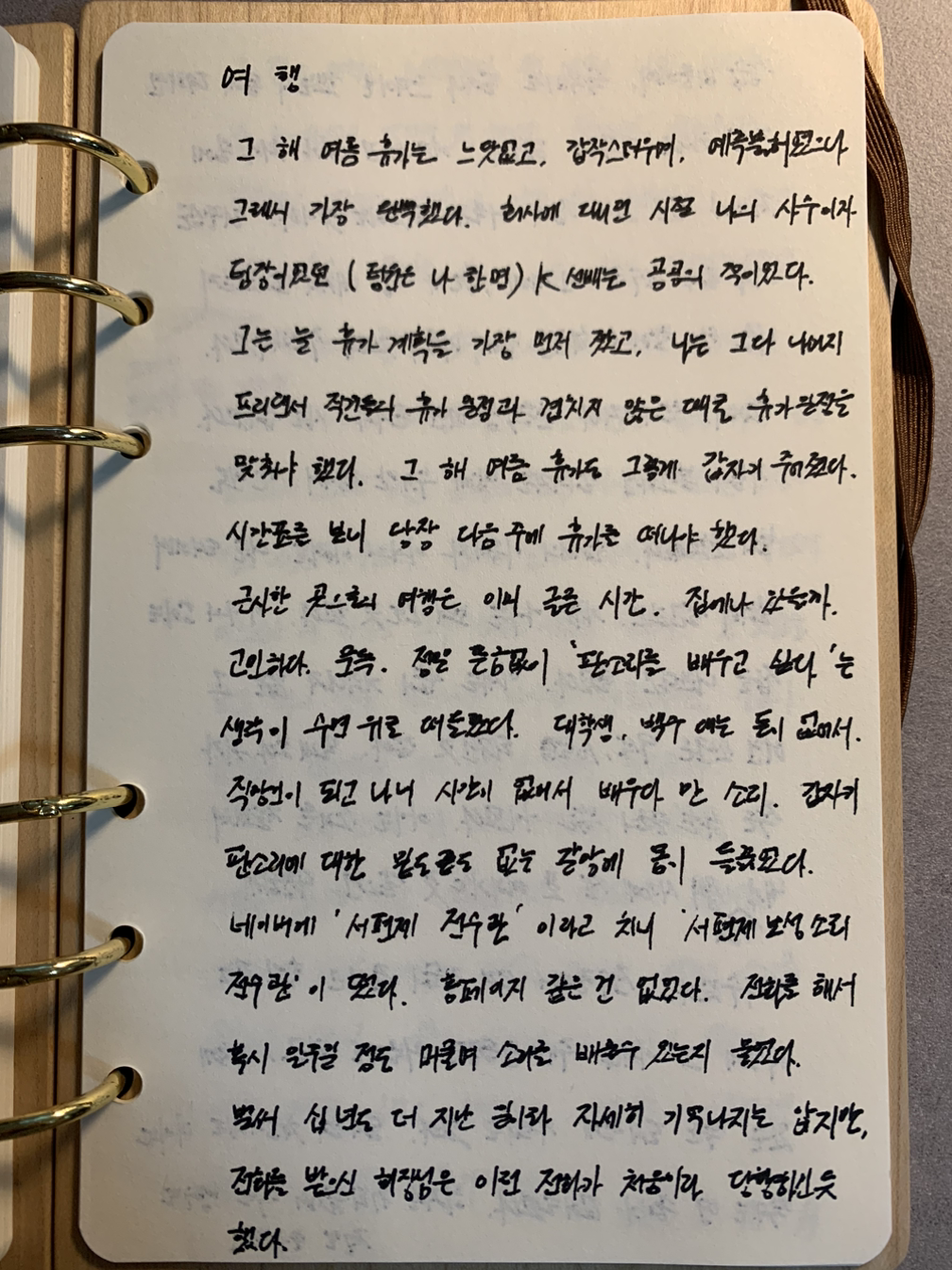 회사에 다니던 시절 나의 사수이자 팀장이었던(팀원은 나 한 명) K 선배는 공공의 적이었다. 그는 늘 휴가 계획을 가장 먼저 짰고, 나는 그와 나머지 프리랜서 직원들의 휴가 일정과 겹치지 않은 때로 휴가 일정을 맞춰야 했다. 그 해 여름휴가도 그렇게 갑자기 주어졌다. 시간표를 보니 당장 다음 주에 휴가를 떠나야 했다.