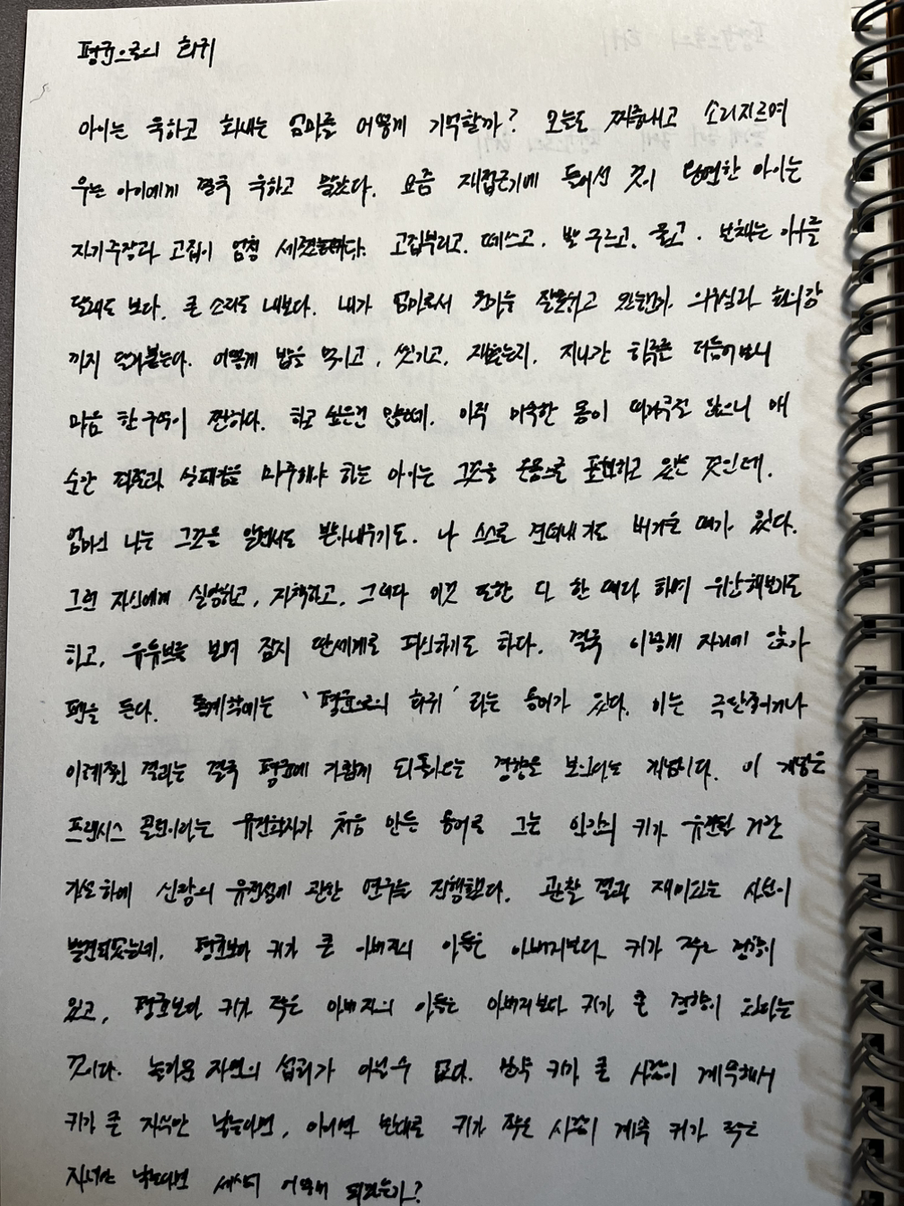 하고 싶은 건 많은데, 아직 미숙한 몸이 따라주질 않으니 매 순간 좌절과 실패감을 마주해야 하는 아이는 그것을 온몸으로 표현하고 있는 것인데. 엄마인 나는 그것을 알면서도 받아내 주지도, 나 스스로 견뎌내기도 버거울 때가 있다. 그런 자신에게 실망하고 자책하고 그러다 이것 또한 다 한 때다 하며 위안해보기도 하고, 유튜브를 보며 잠시 딴 세계로 피신하기도 하다, 결국 이렇게 자리에 앉아 펜을 든다.