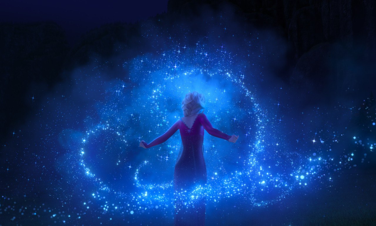 언뜻 보면 <겨울왕국 2>은 <디즈니 프린세스>를 극복한 듯싶지만, 역설적이게도 영화 곳곳에 전통적인 공주의 이미지를 적극적으로 투영시켜놓았다. 마법의 숲은 명백히 <잠자는 숲 속의 미녀(1959)>을 참고했으며, 반짝반짝거리는 눈부심 드로잉은 <신데렐라 (1950)>에서 영감을 얻은 듯싶다.
