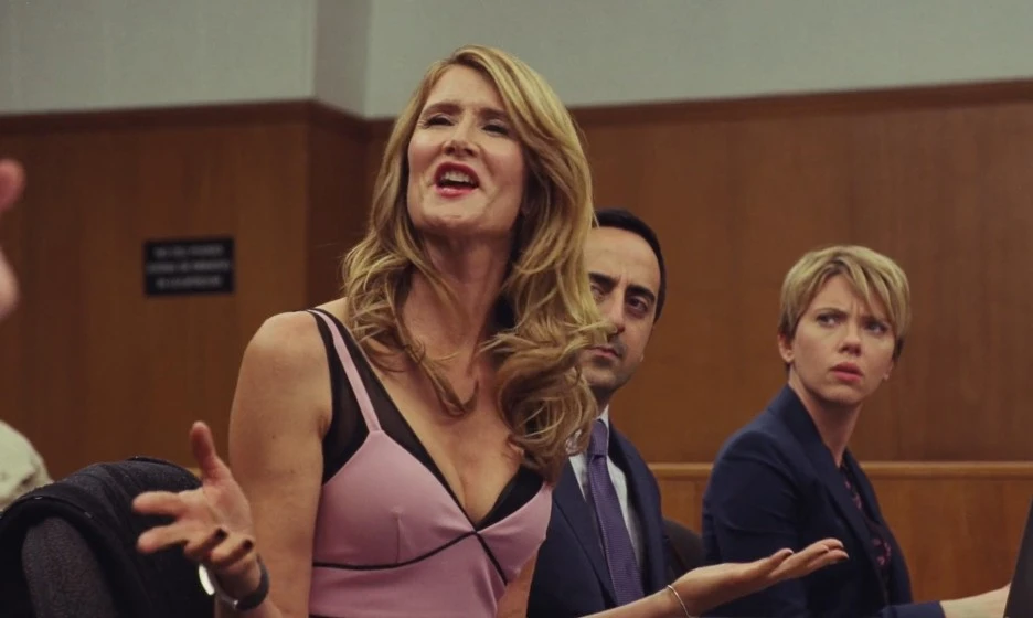 이 영화의 악역은 이혼 전문 변호사역을 맡은 ‘로다 던’이다. 불신을 조장하는 그녀는 가족드라마를 단숨에 법정극으로 이끈다. LA법원의 미팅 룸에서 니콜과 찰리가 변호사를 대동하고 마주 앉아 대치한다. 베테랑 이혼 전문 변호사들은 서로 팽팽한 협상을 펼치다 말고 갑자기 인간적으로 점심은 먹고 하자고 제안한다. 더 높은 수임료를 챙기기 위해 폭로전을 일삼던 변호사들에게는 비즈니스이지만, 당사자인 니콜과 찰리의 사정은 다르다.