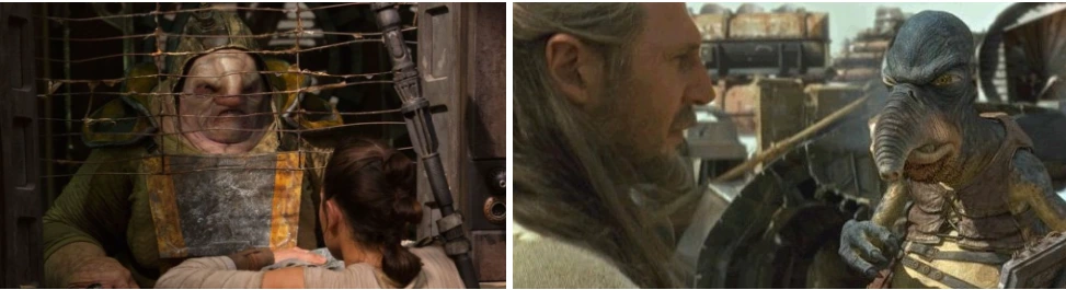 시퀄과 프리퀄의 차이는 생각보다 크다. 예를 하나 들어보겠다. 〈깨어난 포스〉에서 레이가 모아 온 고물을 수거하는 배급소 주인 '운카 풀럿'은 뚱뚱한 구두쇠 정도로 단편적으로 묘사한다. 그러나 〈보이지 않는 관계〉에서 부품가게 주인으로 나오는 '와토'는 어떤가? 이방인인 '콰이곤 진'을 경계하지만 장사치답게 흥정을 건다. 자신의 노예인 아나킨의 포드 레이싱 재능을 인정해서 포드를 제공해 준 적이 있으며, 도박을 하기도 한다. 또, 자바 더 헛을 두려워하고, 세불바가 아나킨에게 해코지 못하도록 단속한다.