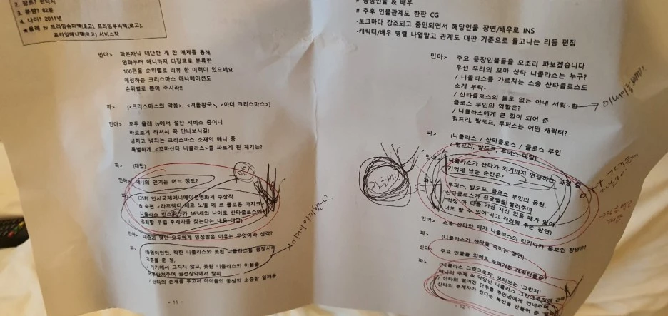 제작진이 친절히 볼펜으로 체크해주셨다.그렇게 촬영이 끝난 줄 알았으나....재촬영이 시작되었고 너무 피곤해가지고 NG를 몇 번 냈다.