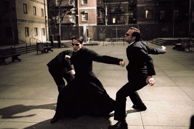 매트릭스 액션장면의 가장 큰 특징은 적극적으로 ‘쿵후’를 활용하고 있다는 것이다. 메로빈지언의 집에서 펼쳐지는 병장기 결투는 쇼브라더스 60년대 무협영화의 공간 활용을 본받아 액션의 동선을 설계되어 있다.