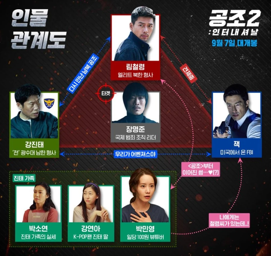 JK필름이 제작하는 첫 속편 영화인 《공조 2: 인터내셔날》는 북한 형사 ‘림철령(현빈)’이 사이버수사대로 전출됐던 남한 형사 ‘강진태’(유해진), FBI 소속 ‘잭’(다니엘 헤니)과 함께 ‘장명준(진선규)’를 체포하는 과정을 담은 액션 코미디 영화다.