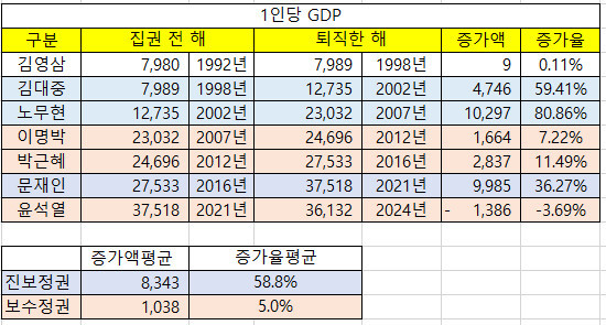 그럼 왜 국힘은 퇴보했을까? 유능한 보수가 그나마 먹히던 마지막 시기가 MB의 “부자 되세요”였다. 747 공약에서 무려 매년 7% 성장을 약속하고, 4만 불 국민소득과 세계 7위권 국가를 약속했다. 거기에 뉴타운 공약으로 국민의 욕망을 자극했다. 2010년, 2월 18일 청와대는 747 공약을 폐기했다. 2009년 리먼브라더스 사태로 0.3% 성장률로 곤두박칠치더니, 강만수의 고환율 정책으로 2만 달러로 내려앉았다. ‘부동산 부양’에도 불구하고 전국 미분양주택 수는 이명박 정부 때(2011년 2월) 8만 588 가구로 역대 정권 중에 가장 많았다. 부동산 가격 상승률도 노무현 정부 때 12.28%보다 현저히 낮은 1.68%에 그쳤다.