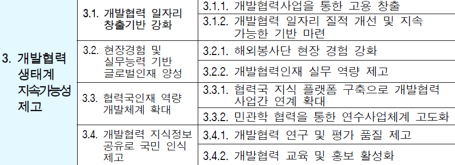 개발협력 생태계 기반 고용 창출 활성화 방안의 기존 방식과 차이점은 개발협력 일자리의 질적개선이었습니다. 기존의 일자리 창출 확대는 계속해서 유지하면서, 민간 파트너 중심으로 질적 향상을 위한 제도 개선을 하겠다는 것이 주요 골자입니다. 개인적으로는 인턴, 계약직으로 귀결되는 양적 일자리 창출이 성과로 나올 때마다 실질적인 고용환경계선은 못하고 있지 않나 하는 의문이 들던 시기가 있었습니다. 해당 목표는 특히 기존의 인턴과 계약직을 전전하던 4-5급 전문가들에게 희망적인 개선방향이 아닐까 하는 생각이 들었습니다.