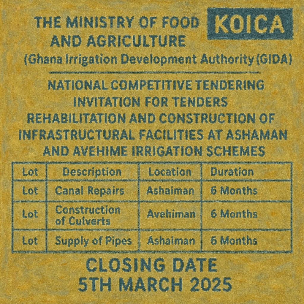가나 정부의 입찰 절차는 입찰공고(Advertisement)-입찰설명회(Pre-tender Meeting)-개찰(Tender Opening)-입찰평가(Bid Evaluation)-평가승인위원회(Review Committee)-시담 및 선정(Negotiation Contract) 순으로 이뤄집니다.