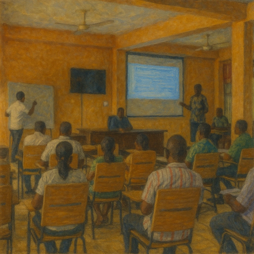 가나의 수리조합 지도자들이 농업용수 관리와 조합 운영, 농촌 지도를 효과적으로 수행할 수 있도록 지원하는 교육 프로그램입니다. 총 63명(3개 관개지구별 21명 선발)의 수리조합 지도자가 3회에 걸쳐 교육을 받으며, 교육은 2주간 진행했습니다. 프로그램 내용은 앞서 말한 교육 프로그램에서 유관 법령과 농촌지도 학습법을 제외한 내용을 배웁니다. 또한, 차후 설명드릴 제안사업 수립 및 실행 방법을 배우고, 선진지 견학(Kpong Irrigation Scheme, World Bank GCAP 사업지역)을 통해 다른 지역의 성공적인 사례를 학습시켰습니다.