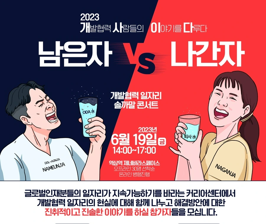 최근에 대학원 석사과정을 마치고 여유로운 시간에 학부 쪽 네트워킹 프로그램, 학회 논문경진대회 발표 등 여러가지 행사들을 참여하고 있습니다. 그 중 개사이다 프로그램은 이러한 여유로운 타이밍에 올라온 프로그램이라 신청하여 참석하게되었습니다. 1부는 개발협력 일자리에 남은자 vs 나간자 토크이고, 2부의 경우 코이카 중장기목표와 관련된 내용이었습니다. 과연 어떤 사람이 남고 어떤 사람이 나갔는지 궁금하였고, 코이카의 올해 트렌드를 확인해볼겸 참여하게되었습니다.