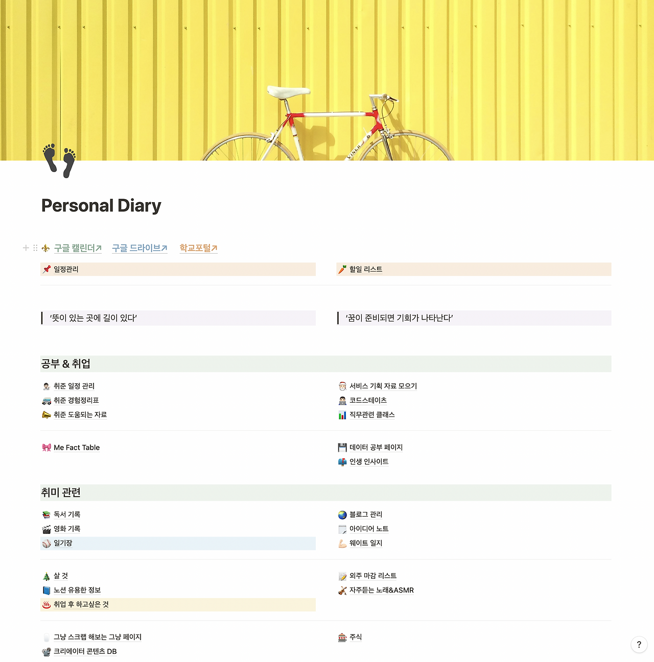 계획형인 나에게 참기 힘든 어려움이 있었으니, 바로 컴퓨터로 찾은 정보나 일정이 정리되지 않는 것이다. 이런 어려움을 어떻게 해결할 수 있었는가 물어본다면 나에게 구세주는 '노션'이었다.