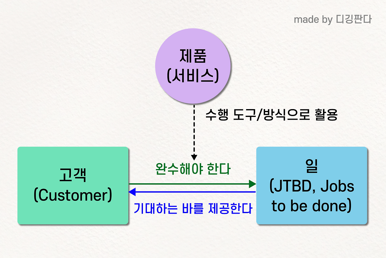 정리와 관련된 스스로의 이야기를 하면서 JTBD를 알아보다 보니 스스로도 이해가 높아지는 것 같았다. 정리 그 자체로는 물론 좋은 습관이지만 정리를 했을 때 달라지는 모습이 의미가 있기에 정리는 JTBD와 맞닿아 있는 부분이 있는 것 같다. JTBD 역시 단순히 수행하는 것이 아니라 궁극적인 고객이 원하는 모습을 담아내려 한다는 점에서 정리와 유사점을 느끼며 이 글을 정리해본다.