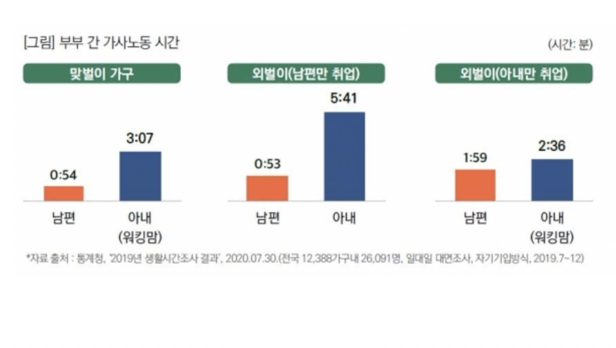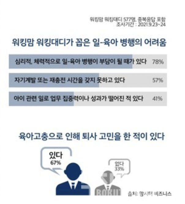 두 번째 이유는 일-육아 병행의 어려움이다. 앞선 김승아 대표님의 인터뷰에서도, 하단 좌측 통계자료에서도 알 수 있듯이 일과 육아를 병행하는 것은 심리적, 체력적인 부담이 크게 따른다. 그 상황에서 평일 퇴근 후 장 보러 마트를 가는 것은 부담이 크며, 아무래도 마트 이용 행태는 주말에 구입하여 평일에 소비하는 방식이거나 온라인 구매일 가능성이 높다. 특히 주말에 구입한 식자재로 일주일 동안 소비하게 되며, 아무래도 유통기한이 긴 식품 위주이거나 일주일 동안 신선로 하락은 피치 못할 수밖에 없다.