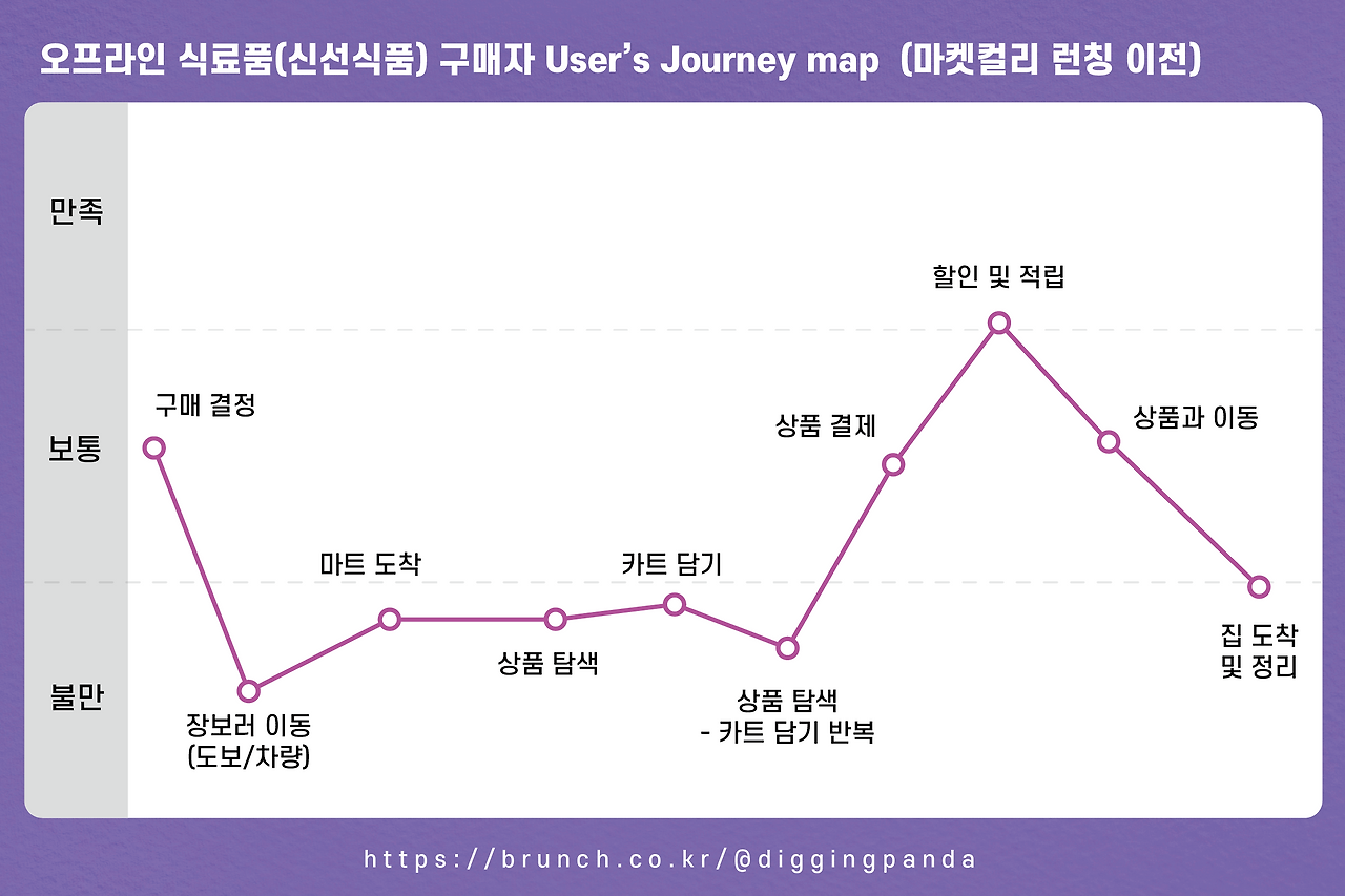 마켓컬리 이전 퍼소나 해당 고객들의 식료품 구매 경험을 고객 여정 지도(User journey map)를 통해 알아보자