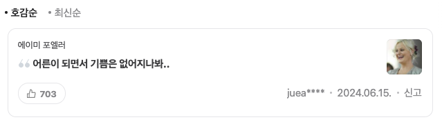 <인사이드 아웃 2>에서 가장 큰 울림을 준 장면은 무엇일까? 사람마다 다를 수 있겠지만, 대부분의 어른들은 다음의 대사였을 거라고 생각한다. 인사이드 아웃 2 명대사로 압도적 1위 좋아요를 받은 걸 보면, 확실히 많은 사람들에게 울림이 있었던 것 같다.