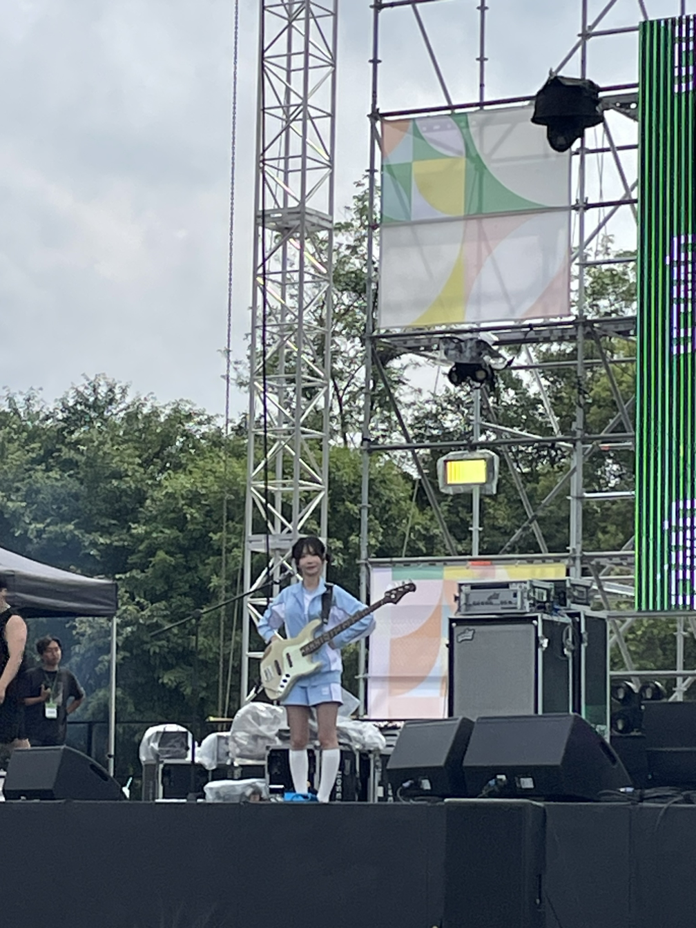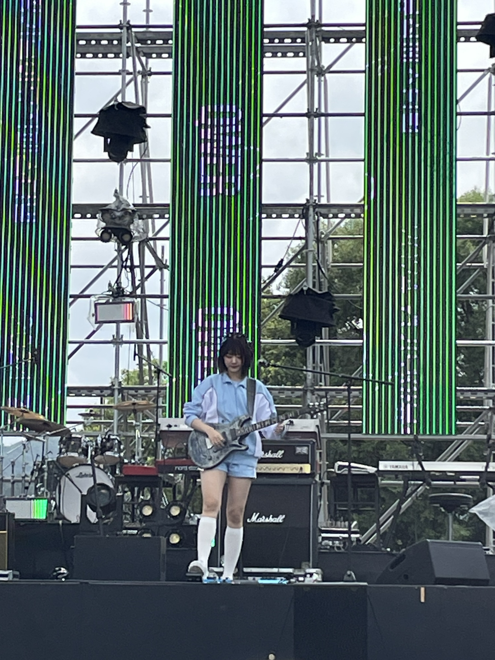 기본적으로 무대랑 스탠딩석 사이 거리가 좀 있었다. 그럼에도 실물을 보는 감동은 충분히 만끽할 수 있었다. 악기 세팅을 마치고 관객석을 바라보는 멤버들의 모습은 기대 이상으로 예뻤다. '아이돌'이라는 수식어를 납득할 수밖에 없는 비주얼이었다.
