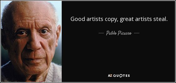 본인의 저작물에서 나온 문구를 쓰는 것을 '베낀다'라고 할 수 있을지 모르겠다. 하지만 너무도 유명한 피카소의 다음과 같은 명언도 있지 않나.