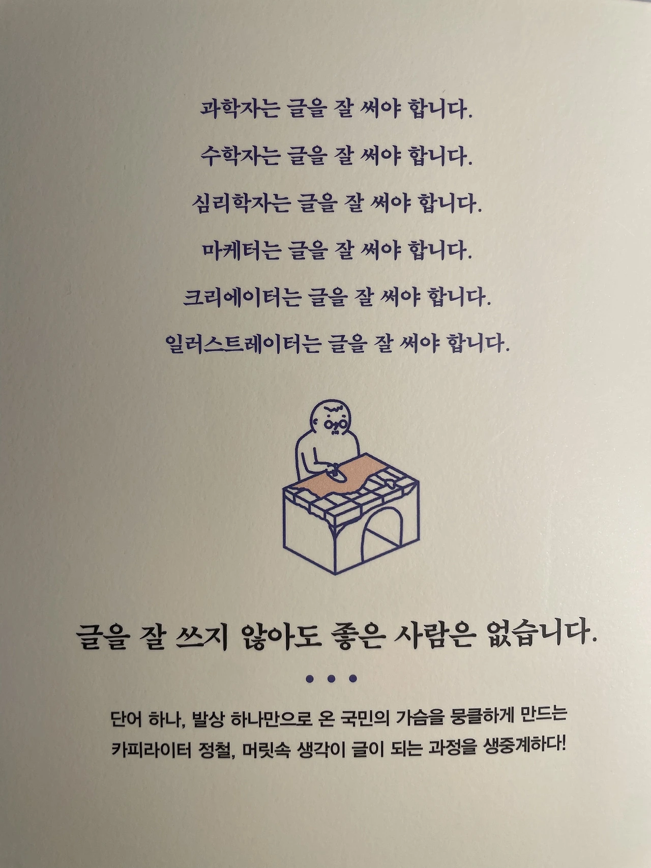 그래서 이 책은 글을 쓰다가 막히는 사람이라면 누구나 한 번쯤 읽어보면 좋다. 이 책의 마지막 카피처럼,