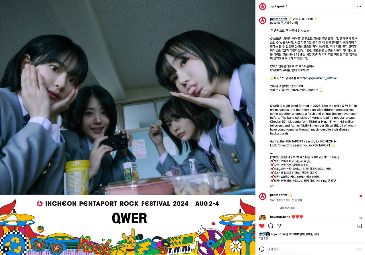 '펜타포트 락 페스티벌'은 '부산 국제 록 페스티벌'과 더불어 국내 최대 규모의 록 페스티벌이다. 밴드씬 최고의 무대에, 데뷔 1년도 안 된 '아이돌 걸밴드' QWER이 오른다는 소식은 그 자체로 인터넷을 뜨겁게 달궜다. 심지어 라인업 공개일이었던 5월 3일까지는 라이브 무대를 보여줄 기회도 적었던 터라, 립싱크나 핸드싱크를 단정 짓는 많은 비난성 댓글들이 달리기도 했다.